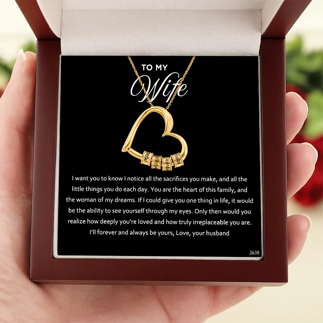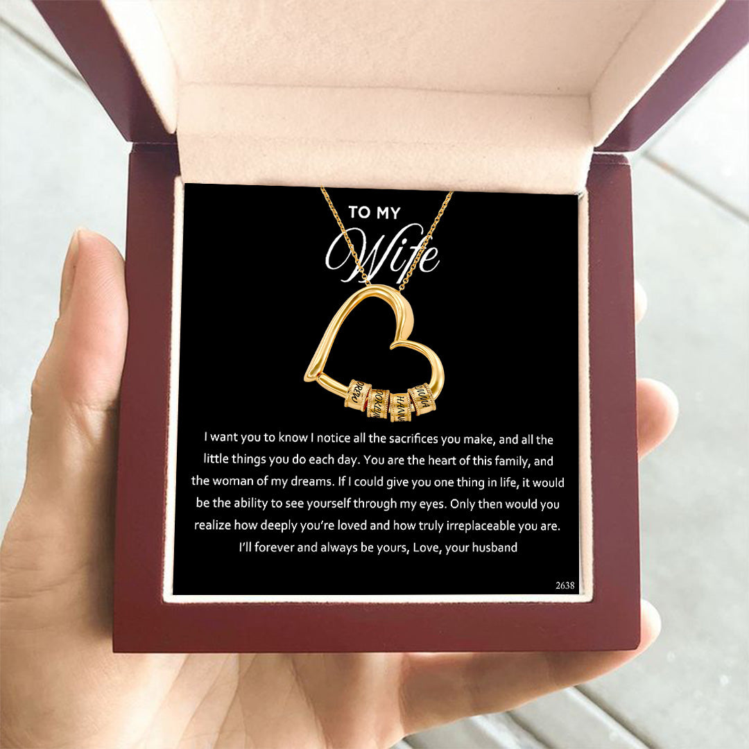 For Wife - Customized Family Names Heart Beaded Necklace